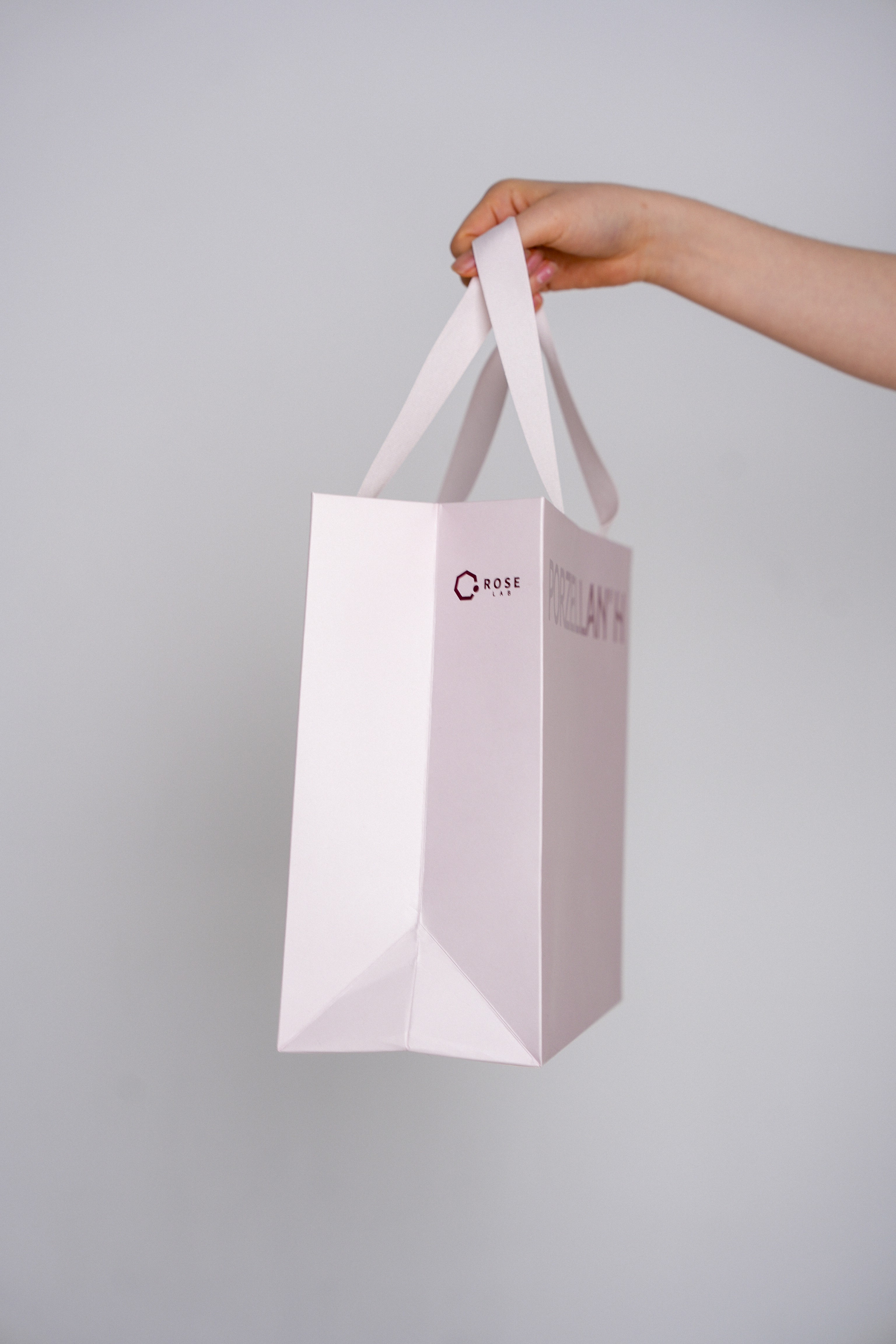 쇼핑백: 한창 B 230g, 적박, 매립형 리본